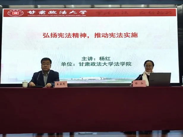 12月4日是第十二个国家宪法日,省文联邀请甘肃政法大学法学院杨红教授以“弘扬宪法精神,推动宪法实施”为题作专题讲座,省文联党组成员、副主席王正茂主持讲座,各市州文联、甘肃矿区文联负责人,省文联业务主管社会组织负责人,新文艺群体代表,省文联全体党员干部共140余人参加活动。讲座围绕新时代全面依法治国的战略部署,以深入学习贯彻习近平法治思想为主线,重点围绕习近平总书记关于全面贯彻实施宪法的重要论述、宪法的发展历程、宪法精神的提出及其深刻内涵、合宪性审查制度、宪法宣誓制度等五个方面,从理论体系、历史脉络到制度创新进行了系统阐释。讲座以丰富的法治案例和翔实的数据资料,深入分析了宪法在推进国家治理体系和治理能力现代化中的重要地位,对广大党员干部和文艺工作者进一步深化对宪法核心要义和制度体系的理解,自觉推动陇原文艺事业繁荣发展起到了积极促进作用。