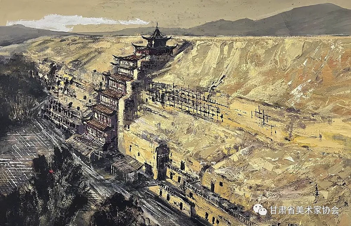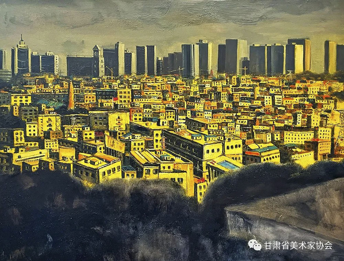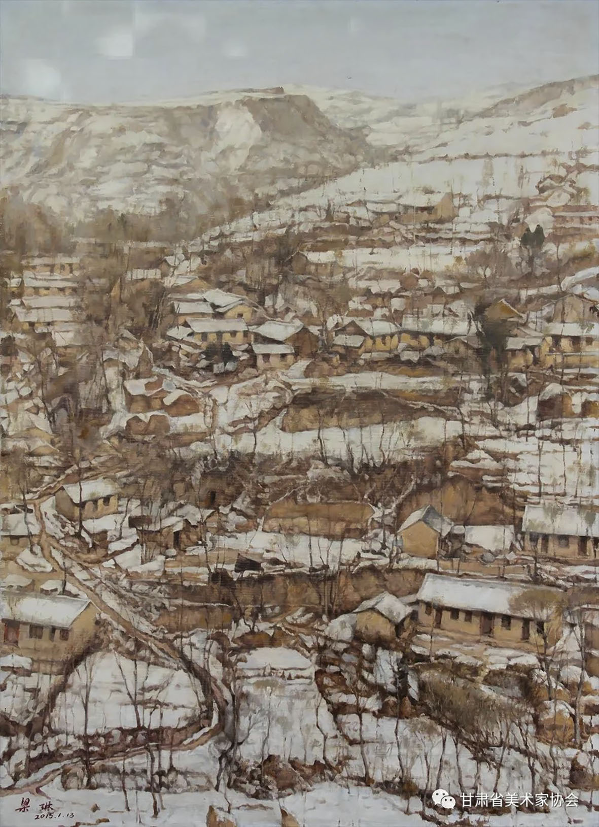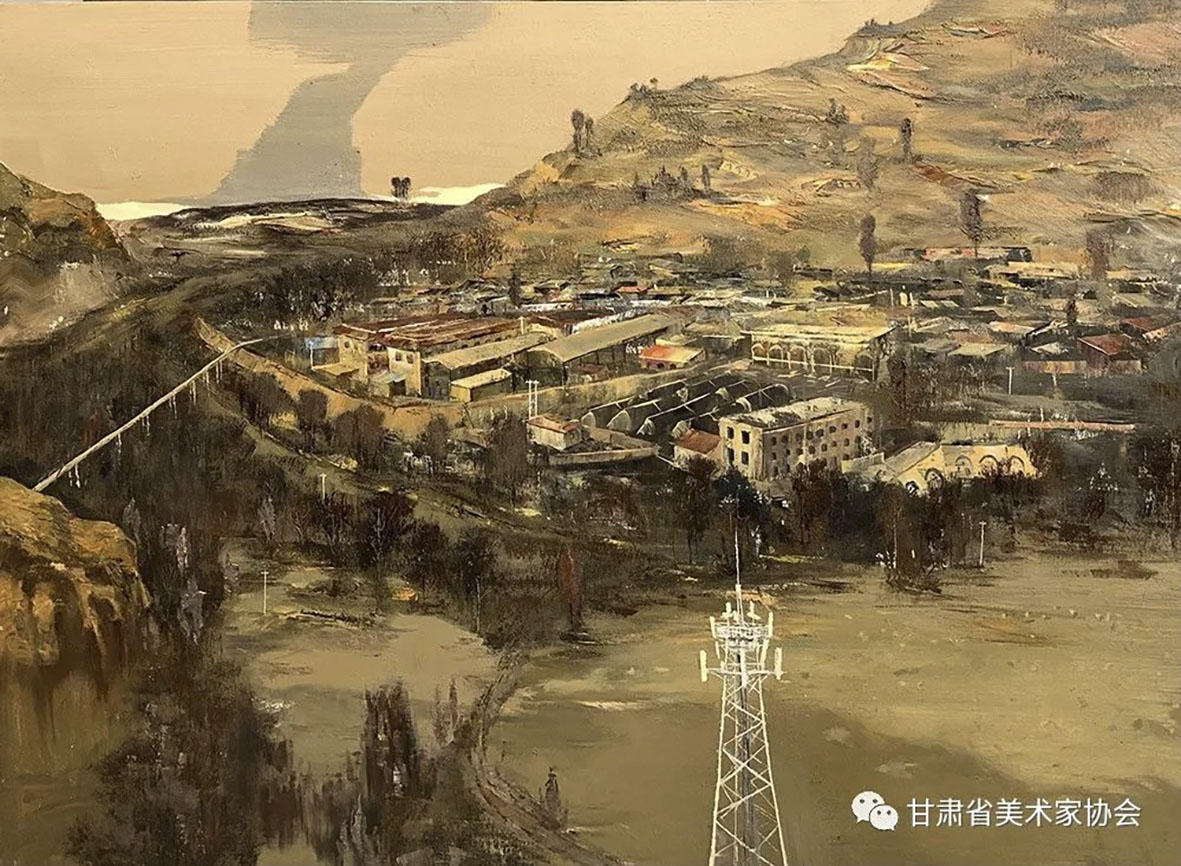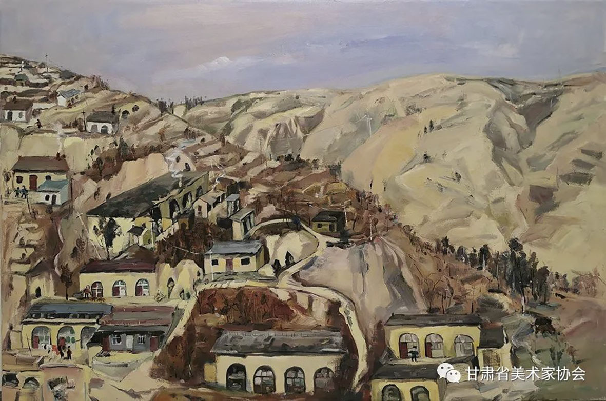 梁进宝《塬上新村》91×70cm 白银