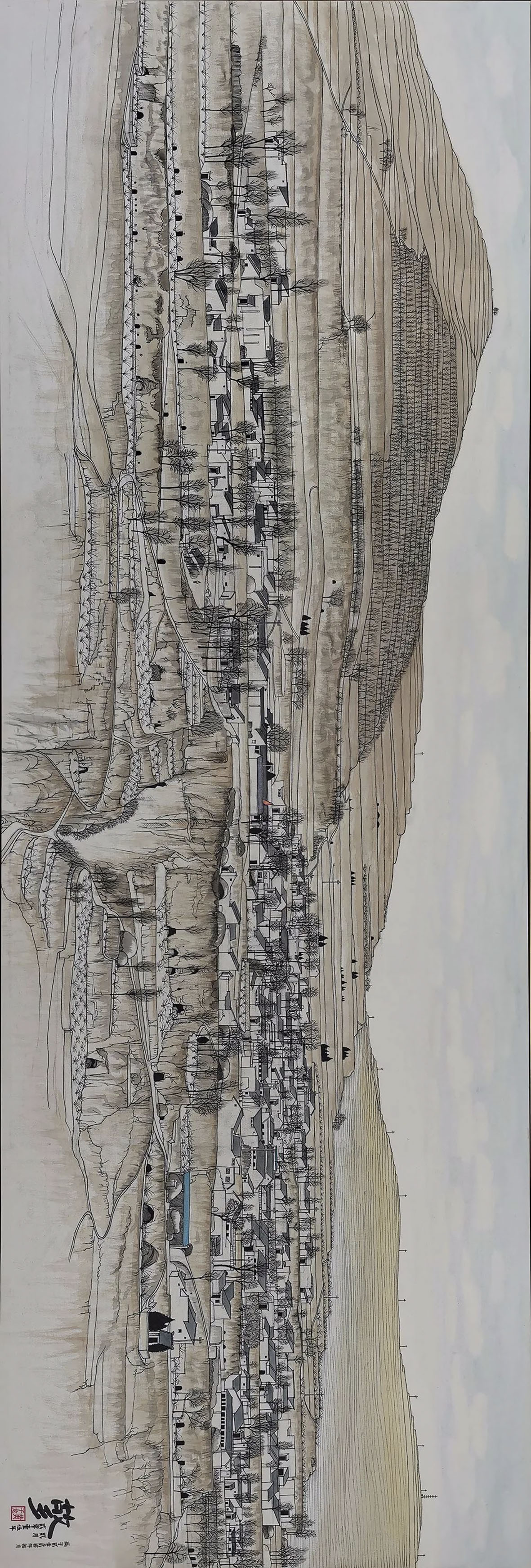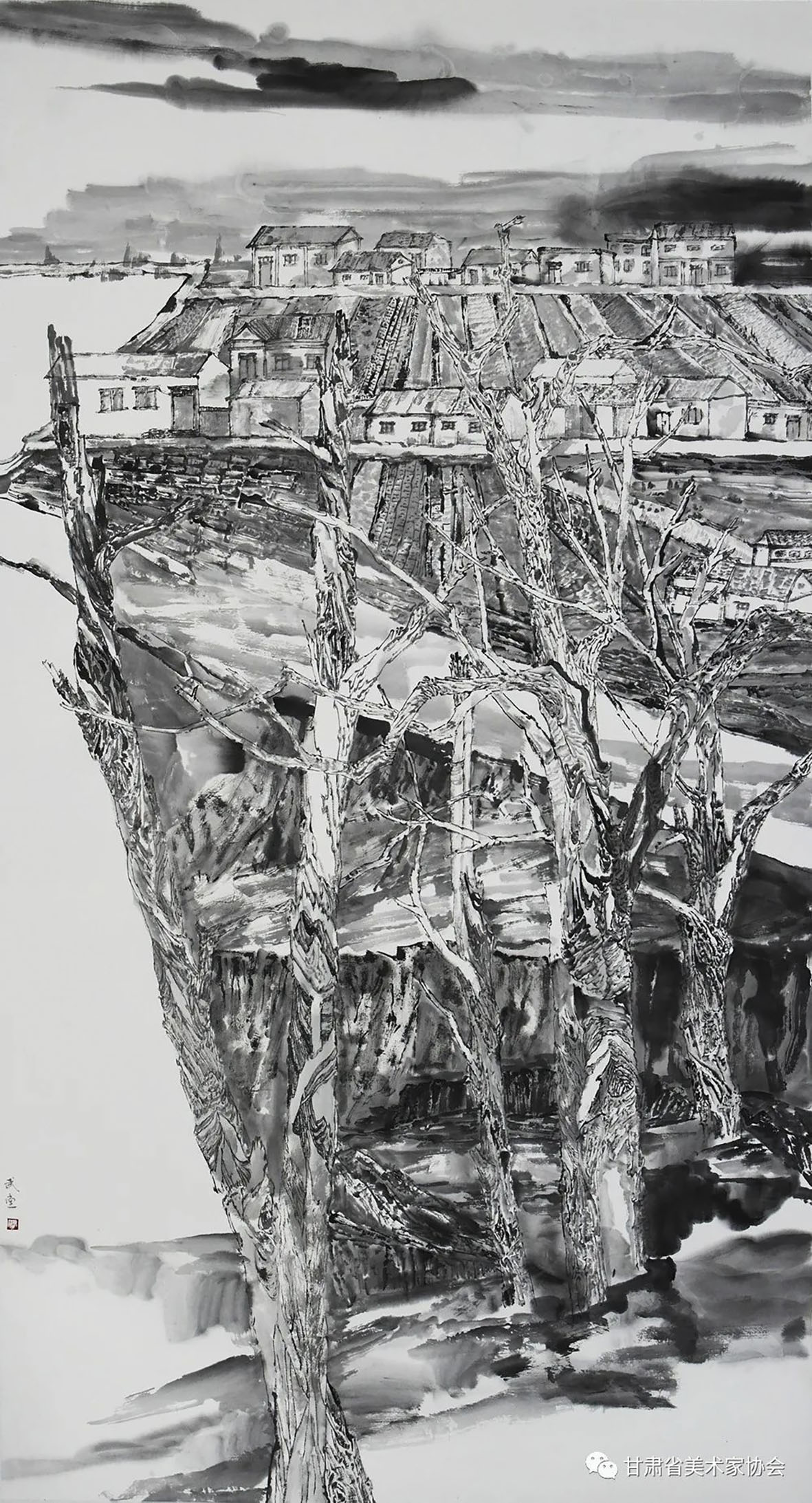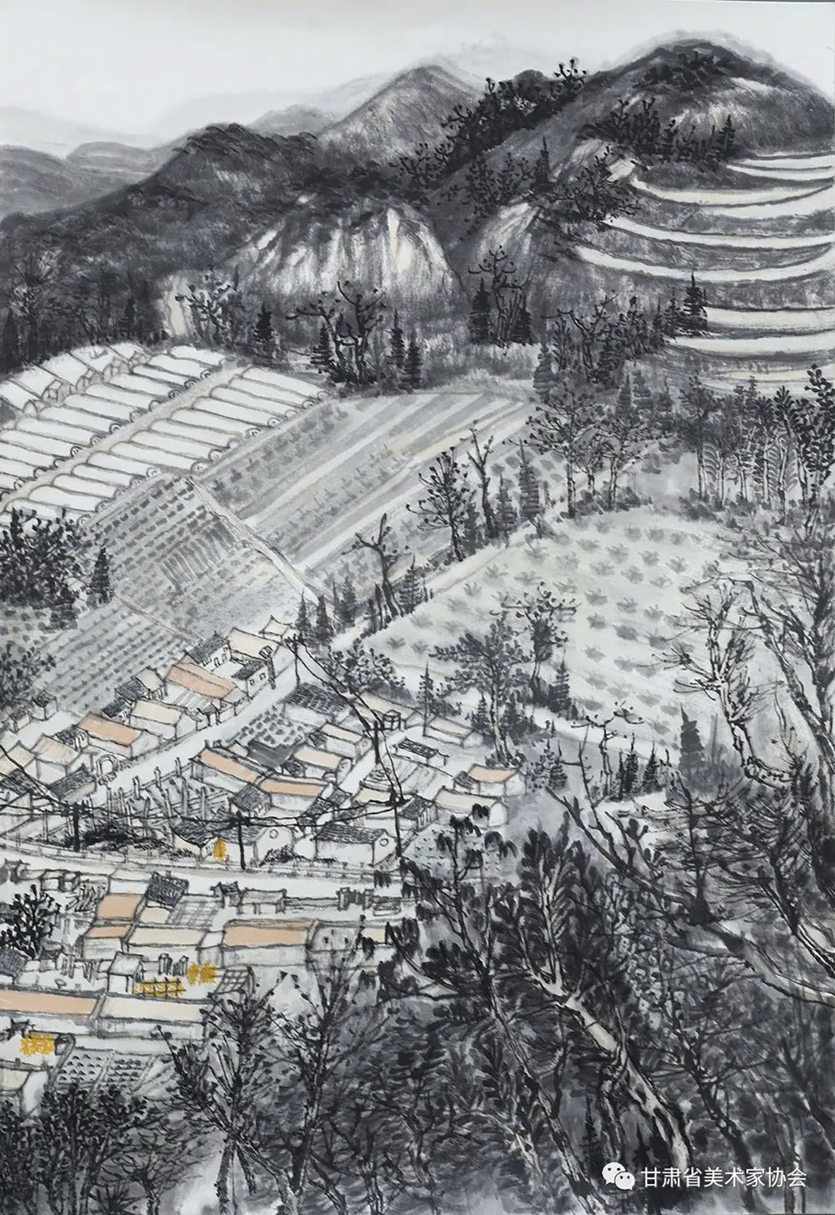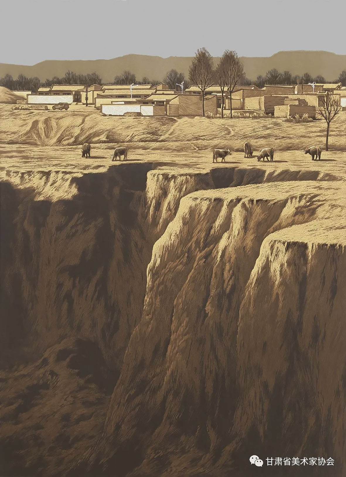梁进宝《塬上新村》91×70cm 白银