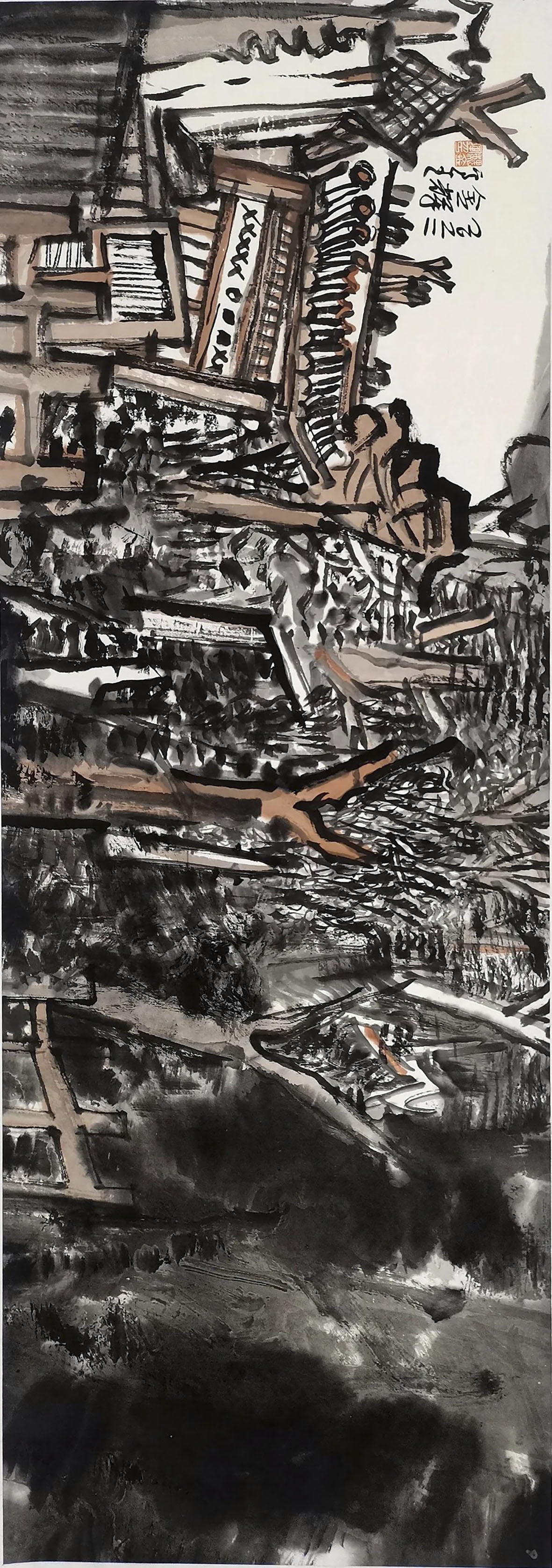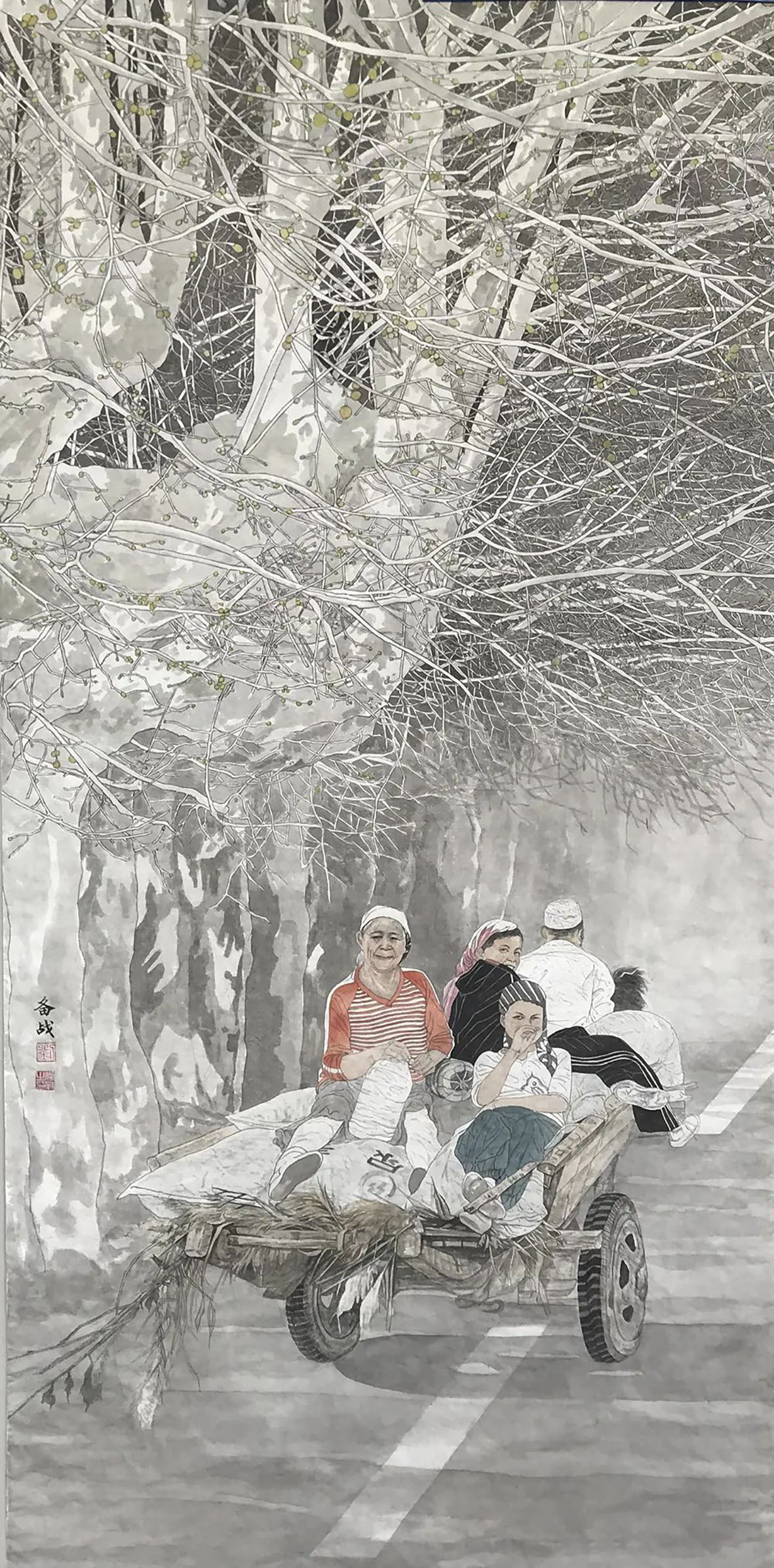 税洋洋《初春游新村》116×54cm 天水