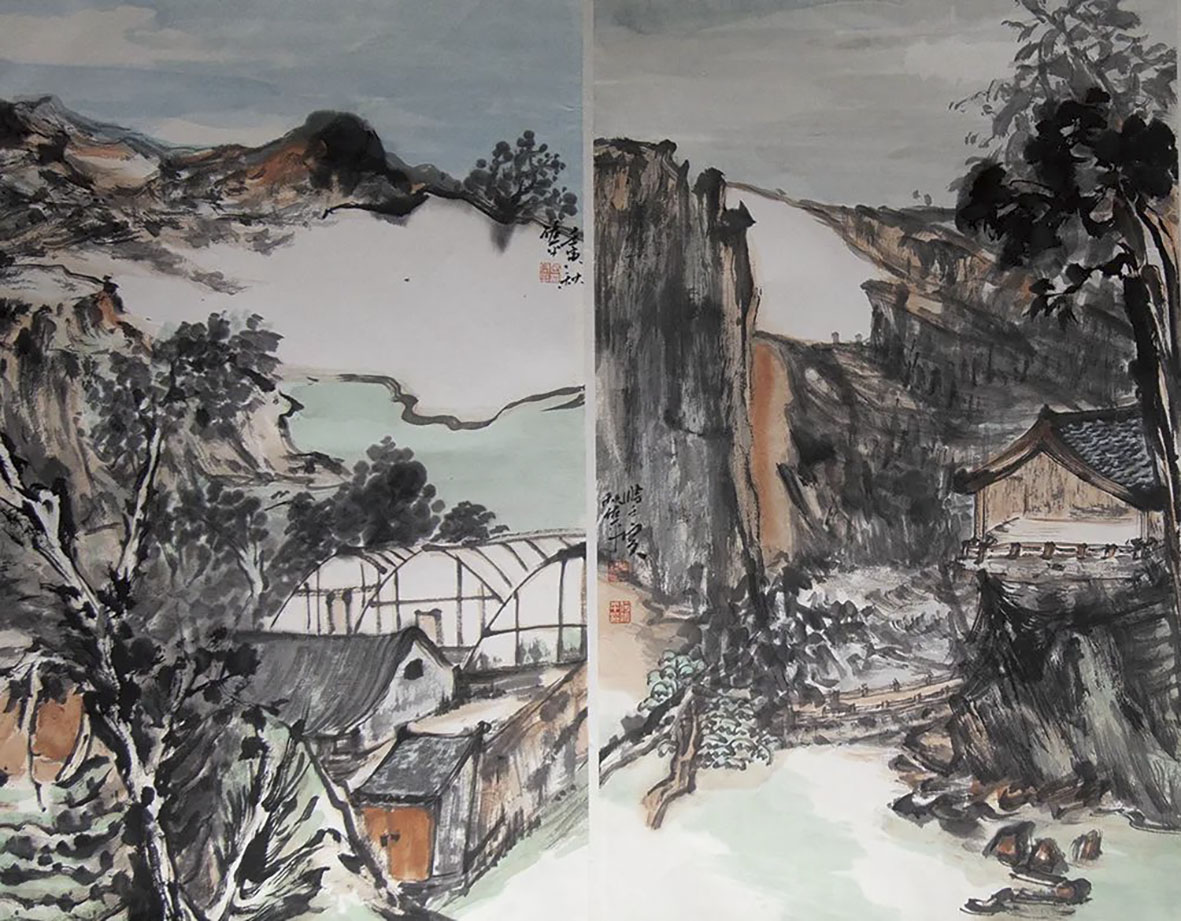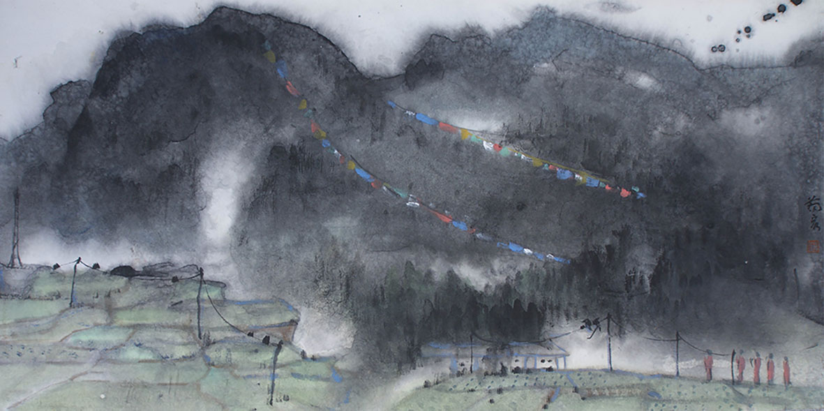 蔡体志《家乡印象》70×150cm 天水