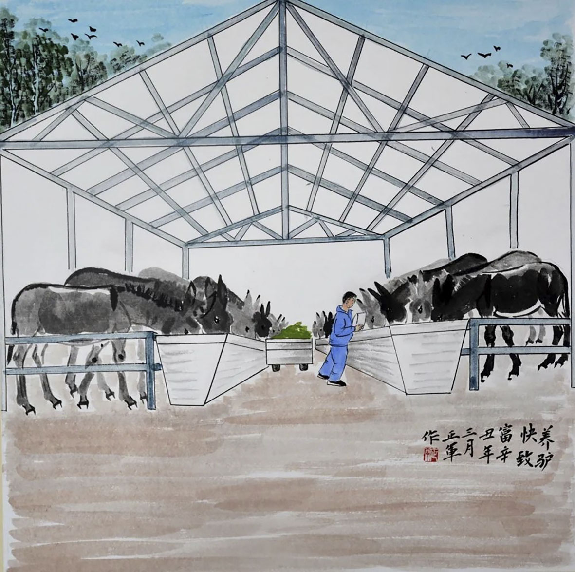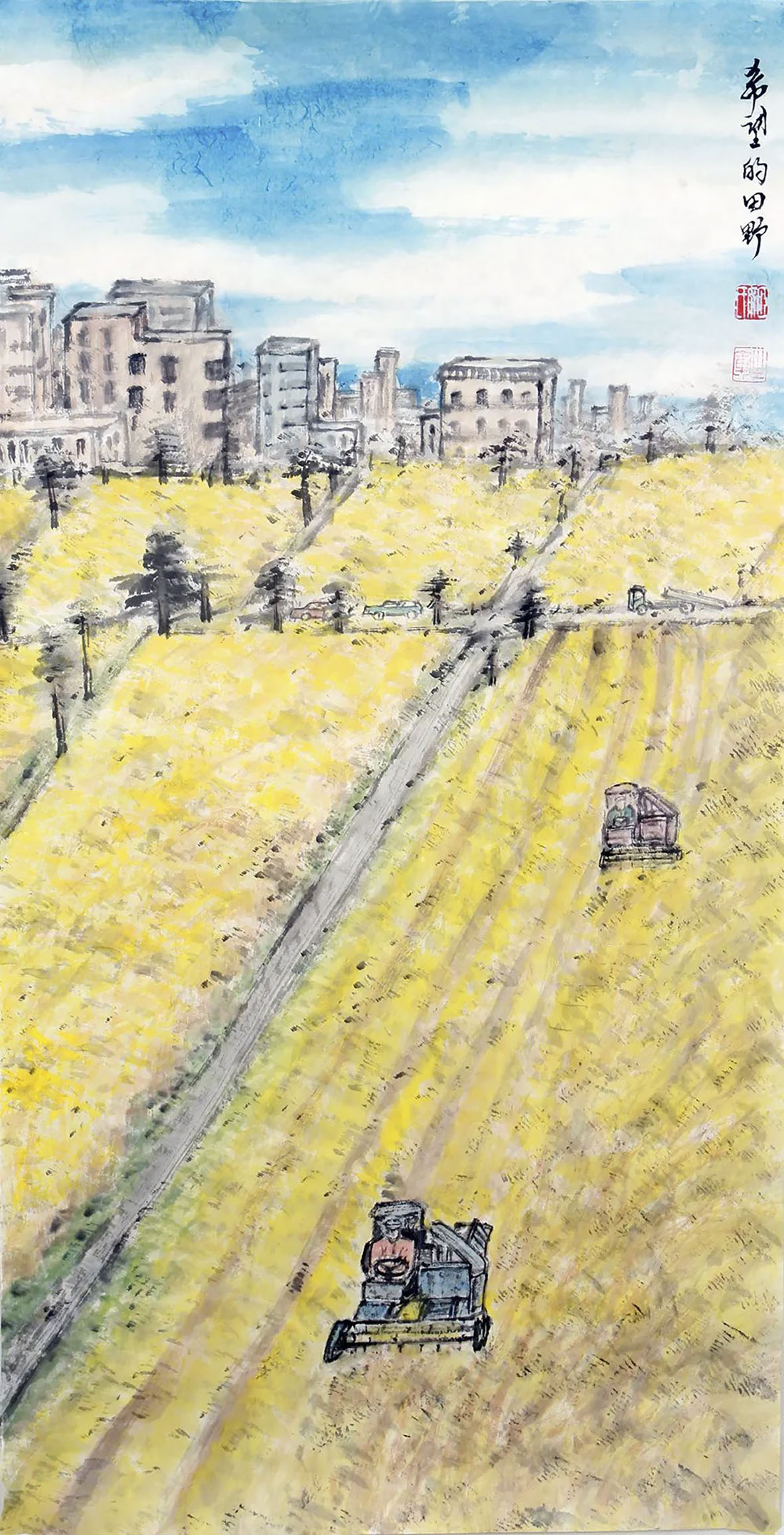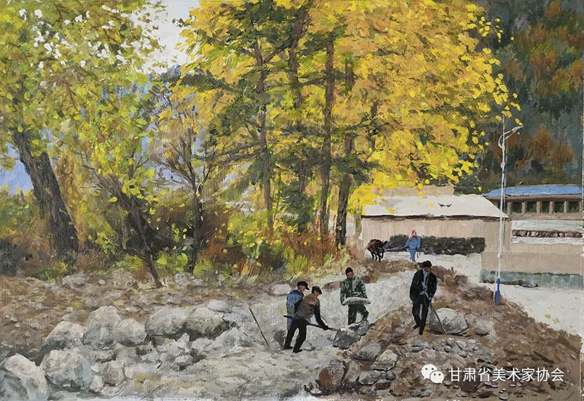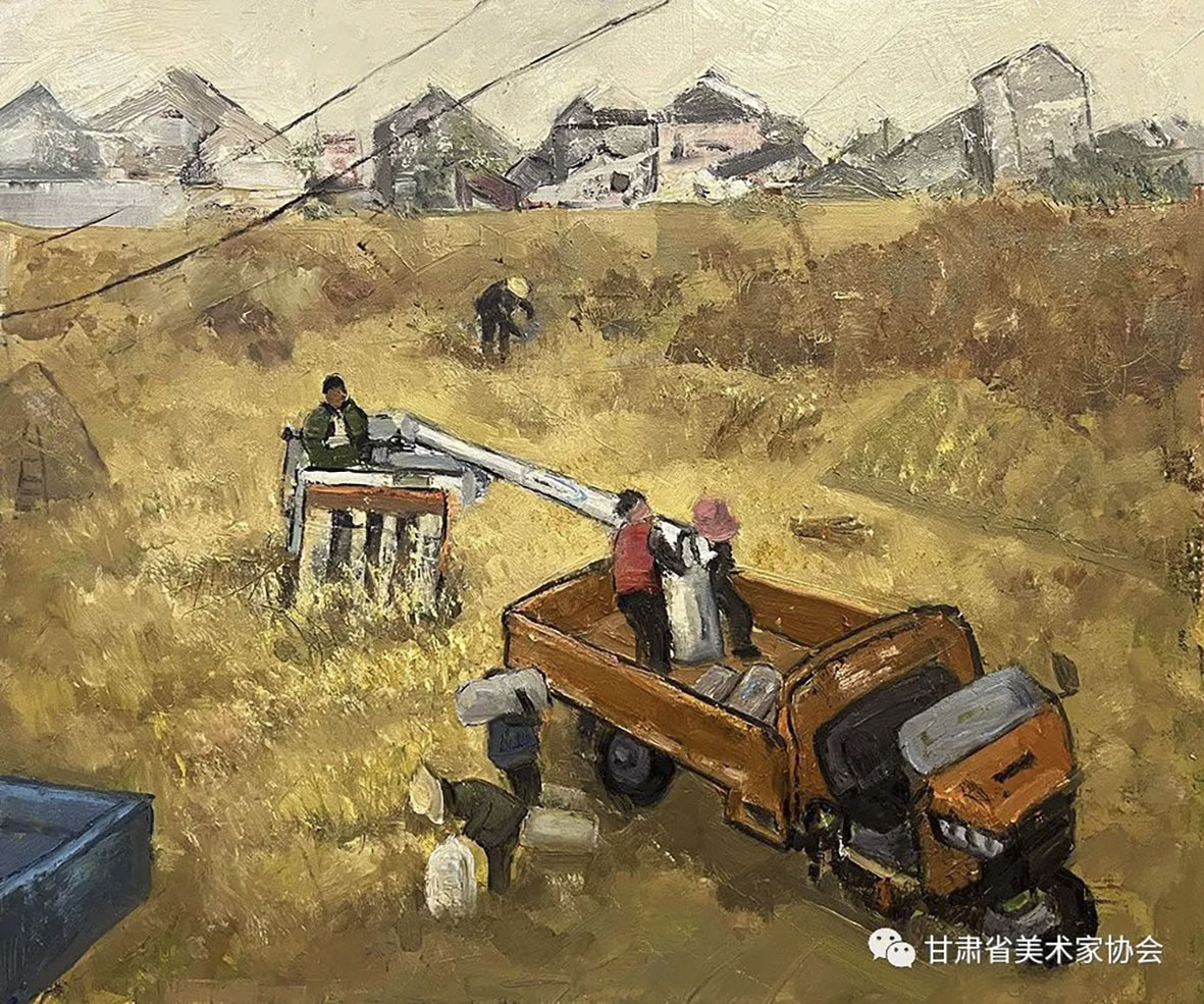 齐典庚 蒙莹娟 刘永华《新乡村建设—机械化》50×60cm 兰州