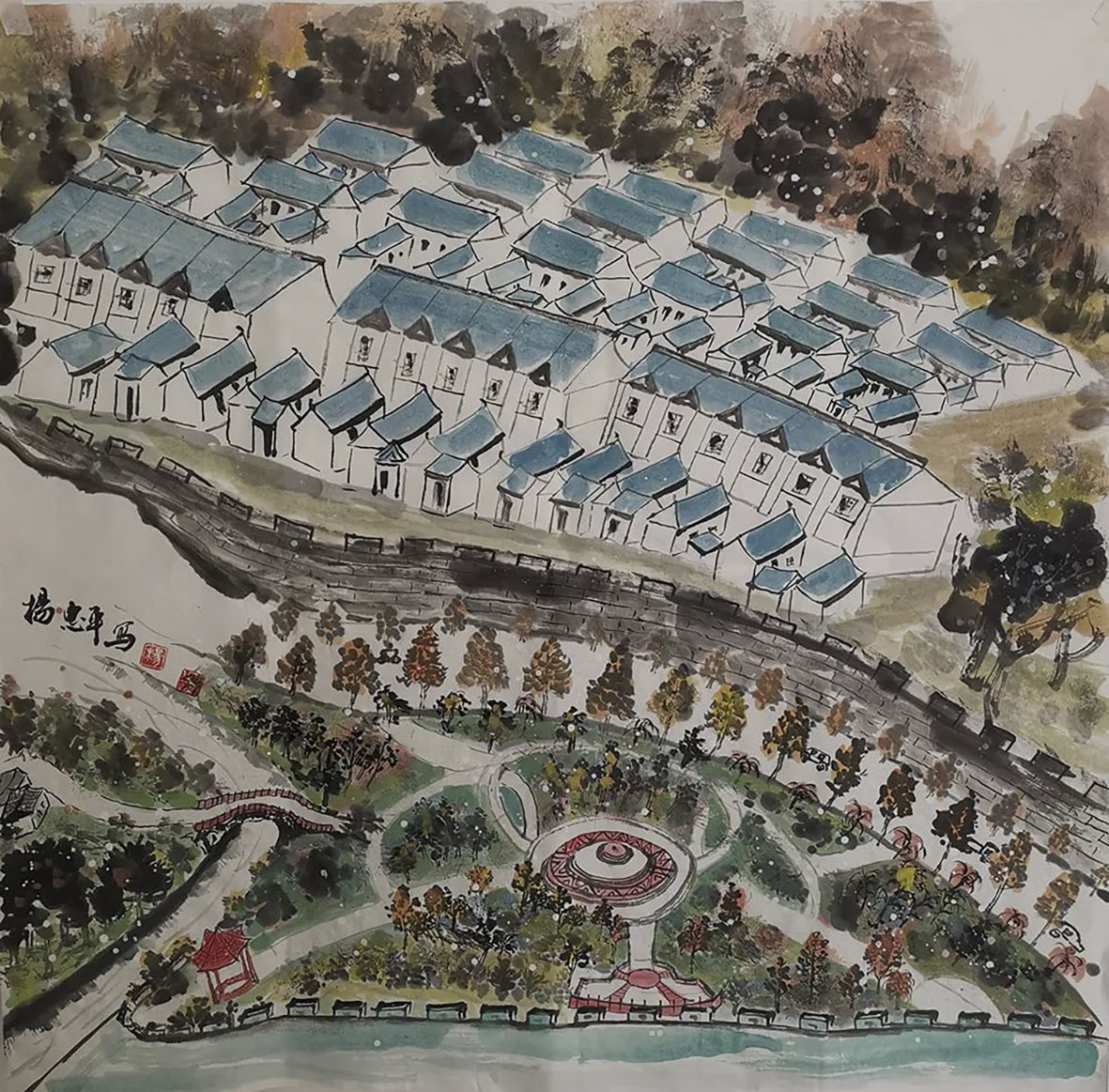 李瑾《农旅新生活—时光记忆小镇》61cm×46cm 陇南