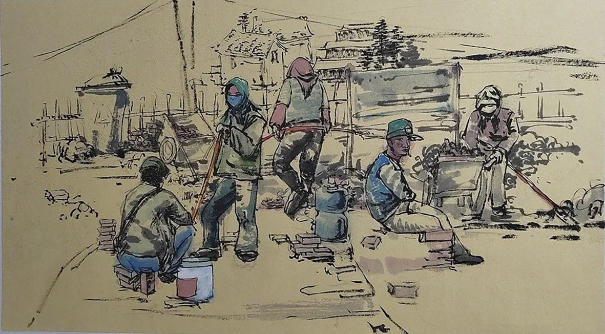 张鹏《新农村建设者》73×103cm 定西