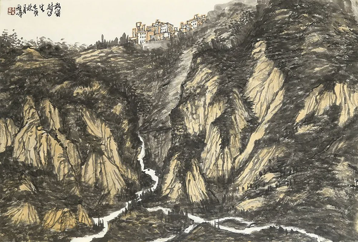 党小飞《山乡小村》60×60cm 庆阳
