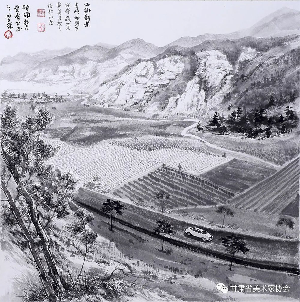 刘鸿《乡村振兴系列之公路通向前进村》45×45cm 定西
