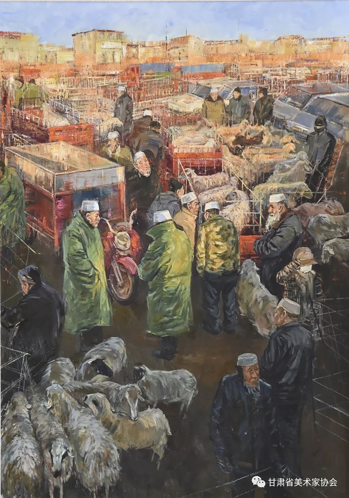 张博英《美丽乡村-暖阳下的集市》70×100cm 庆阳