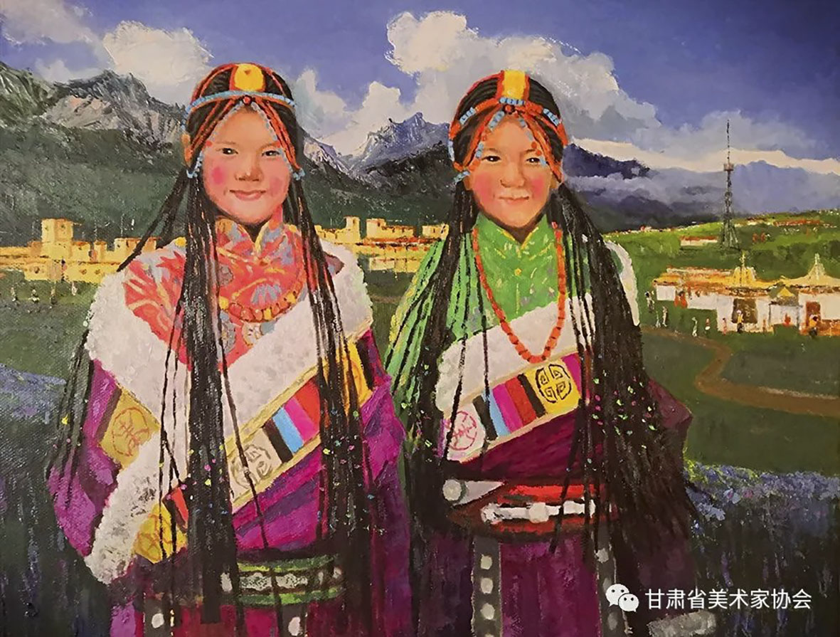 范俊杰《甘南碌曲危房改造朶秀村牧民新居--小卓玛着盛装》60×80cm 酒泉