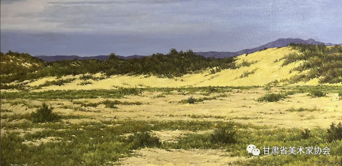 孟连浩《戈壁·绿洲》80×160cm 天水