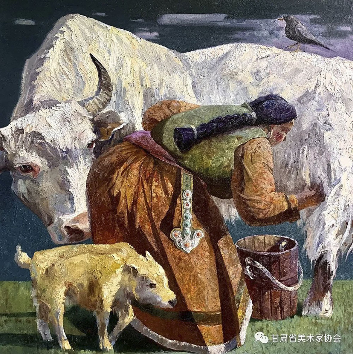 李晓蕊《挤牛奶的妇人》100×100cm 庆阳