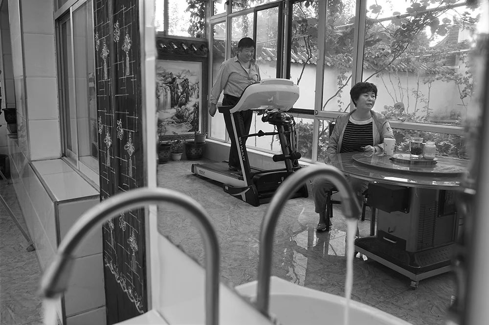 2020年09月15日,甘肃省临夏县土桥镇辛付村,村民在院子的电子健身器上锻炼身体,自来水进家园提升了农村人的生活质量,村民在享受富裕生活的基础上也不断增强身体素质。